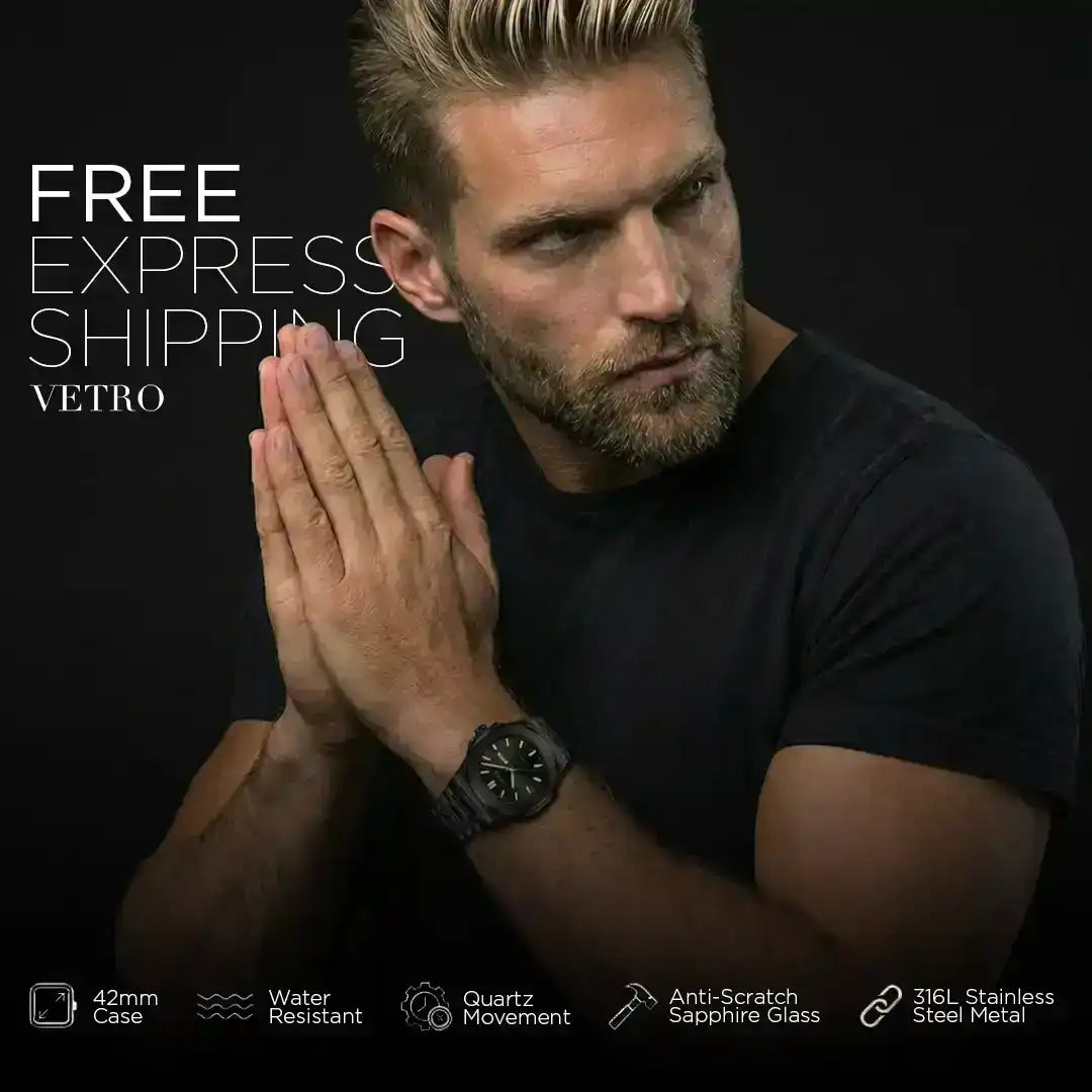 Every VETRO timepiece is built with premium 316L stainless steel - the same grade trusted by leading watch brands - delivering exceptional durability and outstanding water resistance.