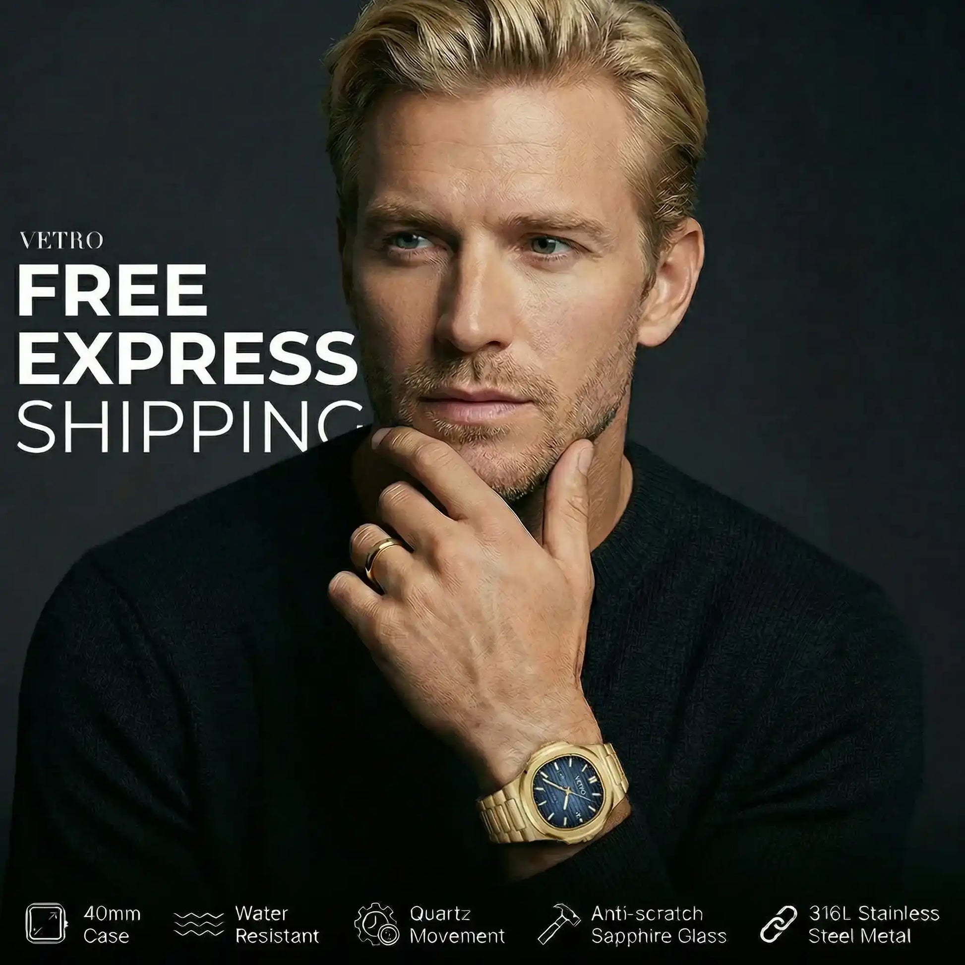 Every VETRO timepiece is built with premium 316L stainless steel - the same grade trusted by leading watch brands - delivering exceptional durability and outstanding water resistance.