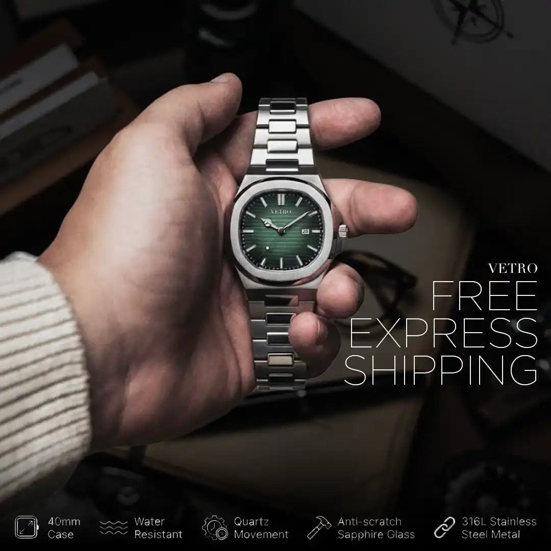 Every VETRO timepiece is built with premium 316L stainless steel - the same grade trusted by leading watch brands - delivering exceptional durability and outstanding water resistance.